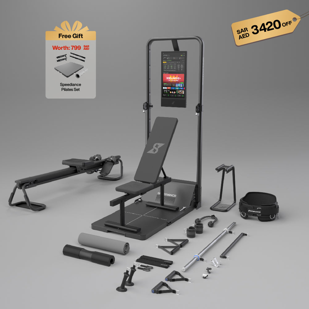 With various attachments such as a barbell, smart handles, tricep rope, ankle straps, ski handles, and a rowing bench, you can perform a wide range of exercises that typically require a trip to the gym using this machine. Some examples include classic squats, bench presses, deadlifts, chest flies, lat pulldowns, rowing, skiing, and many more, which can provide you with a truly immersive gym experience.